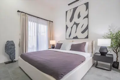 East Jomtien, Srisuk Villa Pool Villa for Sale, Newly Renovated, High Quality, Land size 424 sqm, living area 200 sqm aprox, 5 Bed, 5+1 Bath, European kitchen, Designer Furniture, Tropical Garden, Private Swimming Pool, 24 HS
